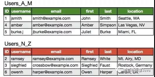 前面垂直拆分的用户表如果进行水平拆分,结果是: