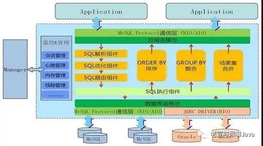 通过独立的中间件来统一管理所有数据源和数据分片整合,后端数据库集群对前端应用程序透明,需要独立部署和运维代理组件。