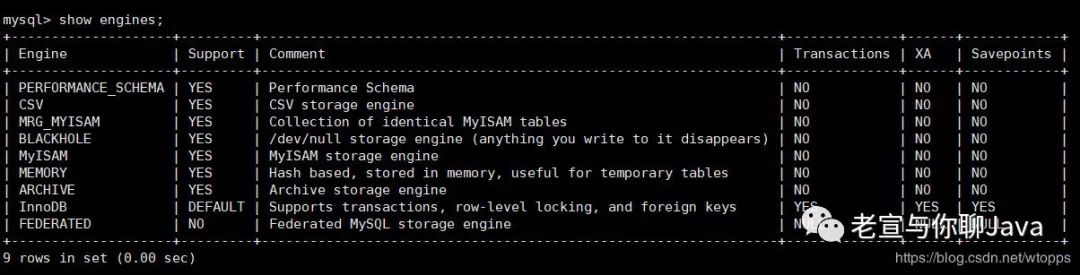 在MySQL中,可以通过命令来查看当前MySQL版本支持的存储引擎: