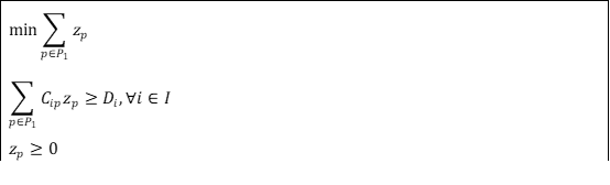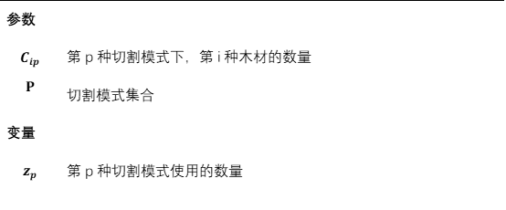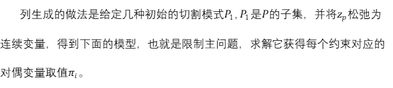 把切割模式集合P全部枚举出来是困难的,几乎不可行,但是也没必要,不是每一种切割模式都会被用得到。