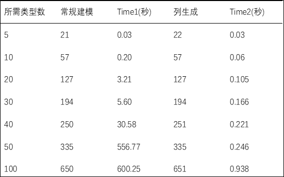 列生成法是一种用于求解大规模线性优化问题的算法,本质上是单纯形法的一种,所不同的是列生成法改善了大规模优化问题中单纯形法中基变换计算效率低的问题,在整数规划中已得到广泛应用。
