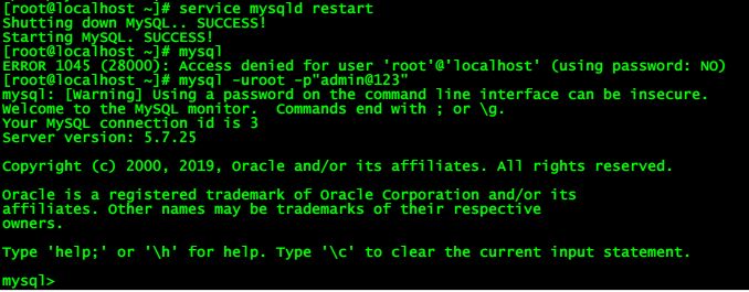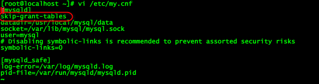 修改root密码后my.cnf中[mysqld]下面再去掉skip-grant-tables,恢复原始的状态,然后重启mysqld服务,这时用mysql -uroot -p"admin@123"本地就可以登录了