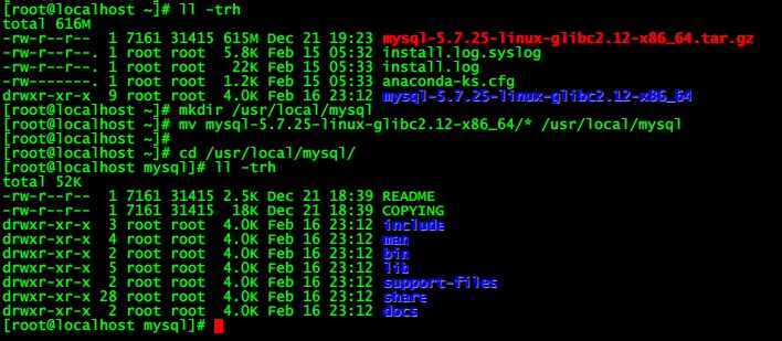 [root@localhost ~]# mv mysql-5.7.25-linux-glibc2.12-x86_64/* usr/local/mysql