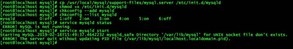 [root@localhost mysql]# cp /usr/local/mysql/support-files/mysql.server /etc/init.d/mysqld