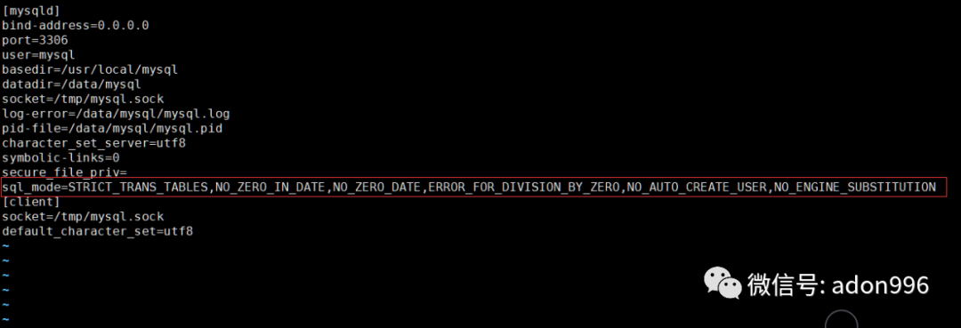 去掉ONLY_FULL_GROUP_BY,重新设置值,退出 MySQL,编辑 /etc/my.cnf 文件,在 [mysqld] 下加入一行: