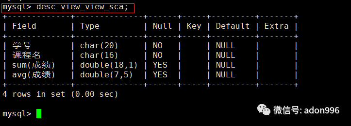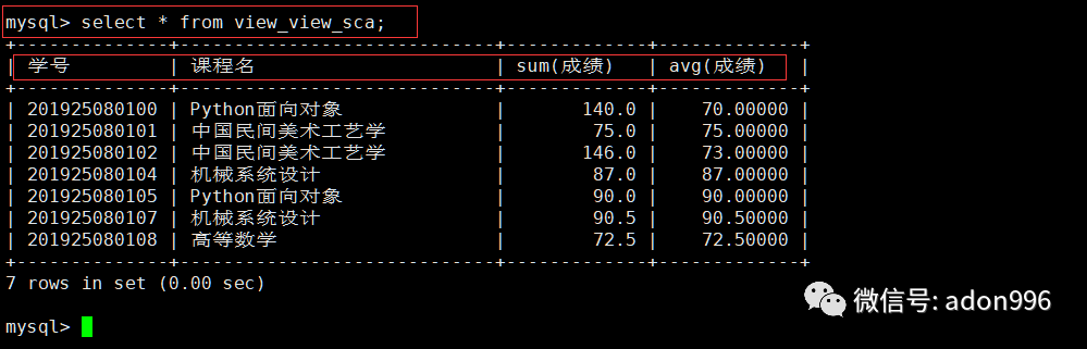 -> as select 学号,课程名,sum(成绩),avg(成绩)