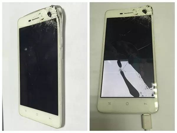 图一这款OPPO-R819T被摔得惨不忍睹屏幕破碎严重