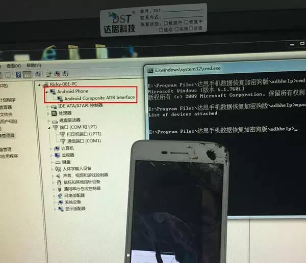 图三:OPPO R819T完全凭借达思数据恢复与取证工程师的经验进入了REC模式