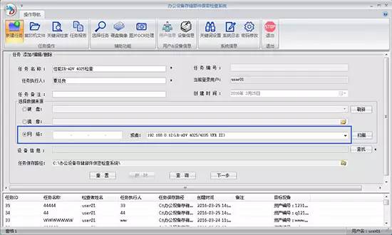 启动DES-8880(如图一),用网线连接佳能IR-ADV4025,启动主程序,如图二所示。新建检查任务,填写或扫描出被检查复印机IP地址,点击下一步。