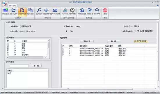 敏感关键词检索:通过OCR技术把图片文字转换成文本文字后,自动进入数据库,系统内设了一些敏感关键词,如:文件、保密、机密、秘密等,还可以自己手动添加自己的“敏感关键词”,然后进行检索。如图五所示。