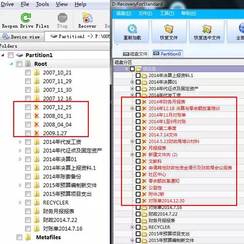 3、本案例中,使用加拿大R-Studio恢复的效果并不理想,但是使用达思数据恢复软件标准版进行删除恢复,恢复成功率95%以上,如图一,达思数据恢复软件和国外R-Studio的恢复结果对比图。