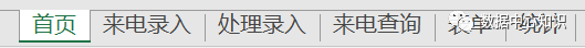 新建一个工作簿,工作簿里面创建6个工作表如上图。其中表单和统计的两个工作表,完成后可以隐藏起来。表单里面就存放一些快捷内容,用于制作下拉按钮里面内容的,比方说员工姓名、来电事由、处理结果等等,方便快捷选择。统计里面就是一条一条的记录。