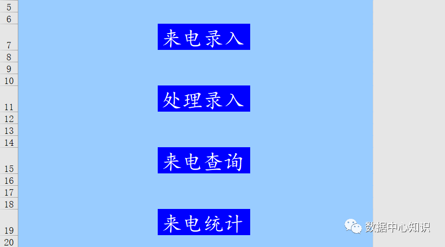 来电查询工作表,上面三个超链接,中间一些内容单元格,下面四个按钮,按钮对应的代码相信不用再过多介绍了,程序员被称为码农,因为一直做着重复的事情。