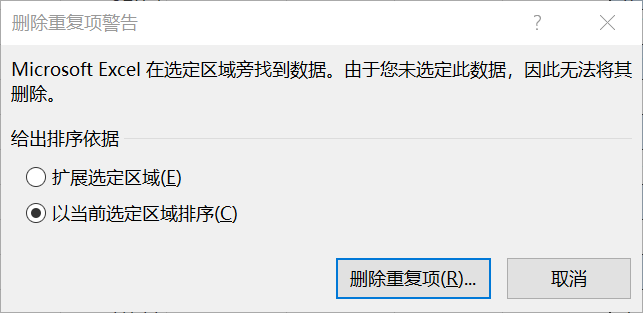 省份名称拿下来比较简单,具体方法为:复制源表格生源省市列的全部内容到空白处,然后粘贴。再选中刚刚粘贴的内容,点击菜单【数据】---【删除重复项】,弹出对话框中选择【以当前选定区域排序】---【删除重复项】,这样就得到了各省的名称。