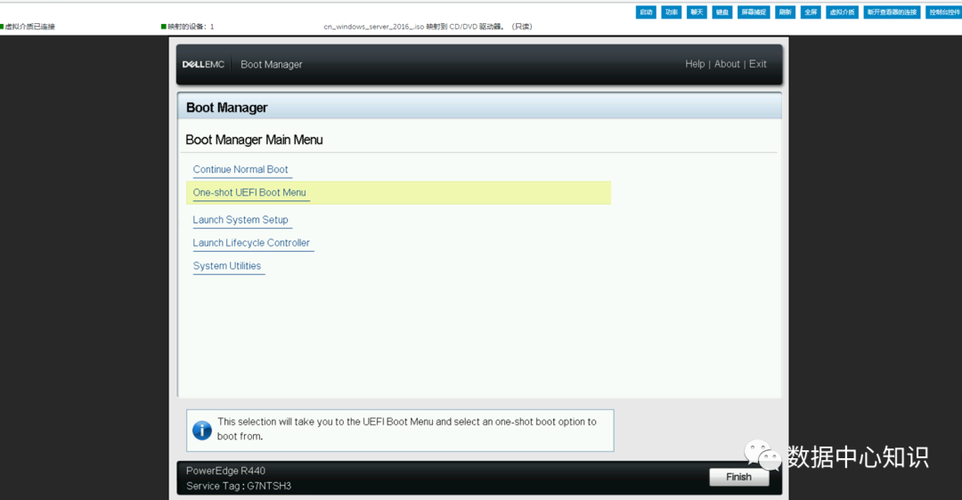 9、进入虚拟平台按F11进入BootManager,并选择点击虚拟介质映射系统文件“Windows 2016”
