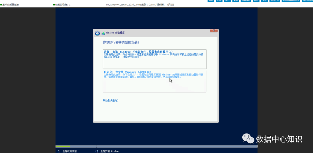 14、选择自定义:安装并对系统分区。
