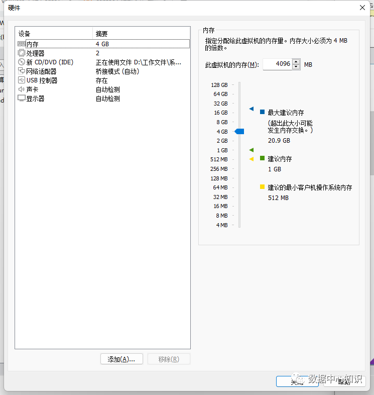 内存结合自己的主物理机的实际大小和需求分配,我的笔记本是24G的,所以给我这边分配了4G的内存。