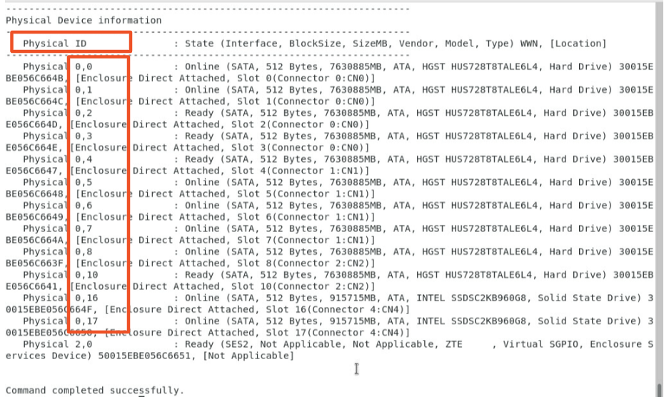 硬盘physical ID 用于设置直通盘,如下图所示。