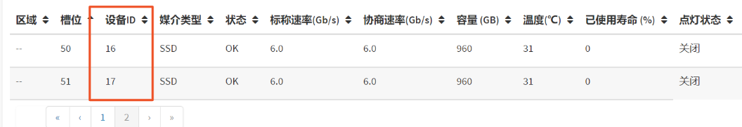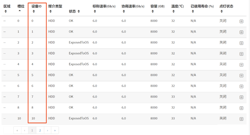 硬盘physical ID 对应web界面硬盘设备ID,如下图所示。