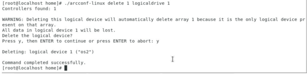 #./arcconf-linux delete 1 logicaldrive X