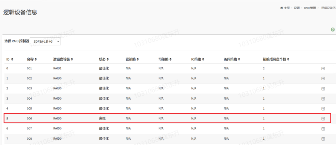 服务器配置PMC RAID卡时逻辑盘离线,如下图所示。