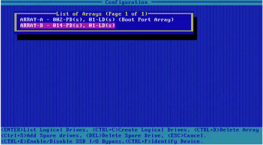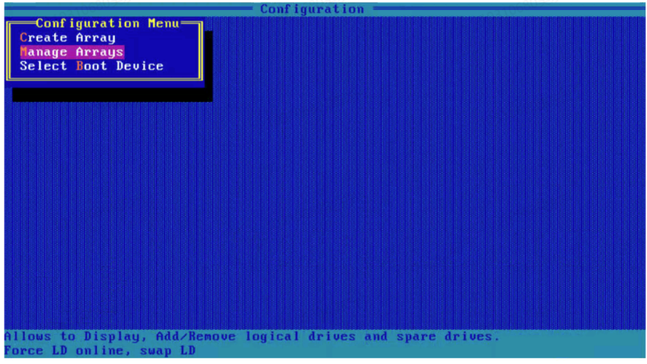 在Configuration Menu页面,单击选择“Manage Arrays”,如下图所示。