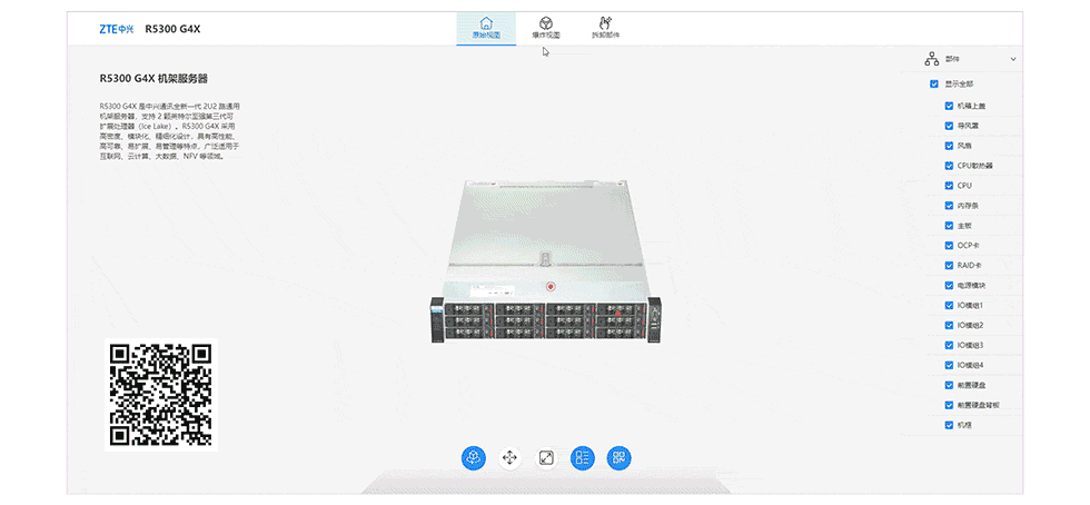 通过部件爆炸的形式展开服务器内部部件,可以帮助您快速掌握产品的内部结构,了解各部件的基本信息。