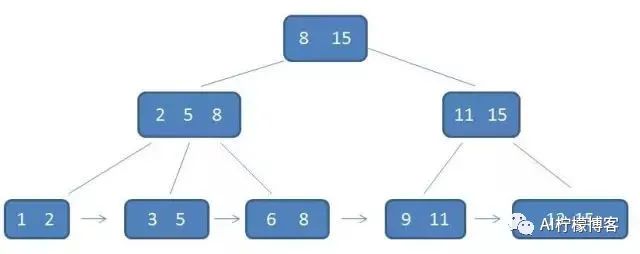 有k个子树的中间节点包含有k个元素(B树中是k-1个元素),每个元素不保存数据,只用来索引,所有数据都保存在叶子节点。