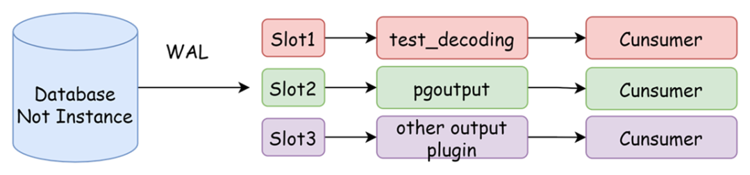 输出插件负责将WAL日志解码为可读的格式,常用的插件用test_decoding(多用来测试),pgoutput(默认使用),wal2json(输出为json)。PostgreSQL定义了一系列回调函数,我们除了使用上述插件,可以通过回调函数编写自己的输出插件。