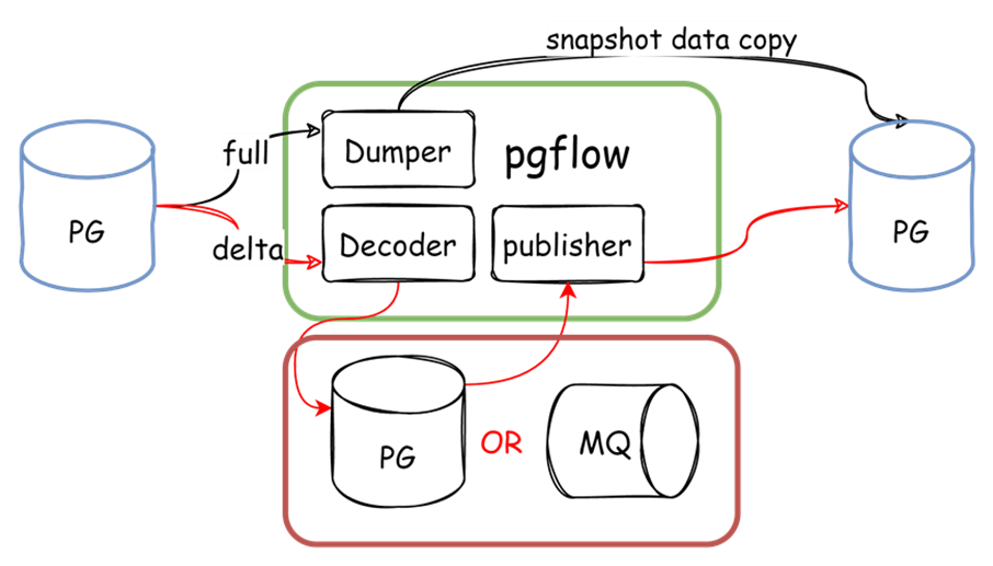 我们使用了PG数据库或者消息队列MQ作为数据代理,全量与增量解析可以同时进行,当全量数据处理完毕后,状态机通知增量处理程序进行增量发布。而对于代理中的数据,可以在解析后进行预处理。