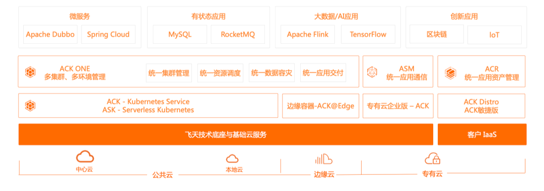 - 对多样化的工作负载的支持。从 Stateless 的 Web 应用、微服务应用,到有状态的中间件和数据应用,再到 AI、大数据、HPC 等计算任务类应用,他们对资源申请和使用方式有不同的需求。