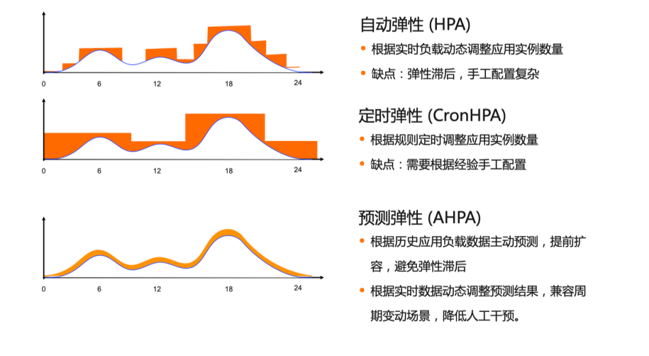 在实践中,很多业务都存在波峰波谷,如果采用固定实例数的方式会造成较大的资源浪费。因此 Kubernetes 中提供了 HPA 实现按需扩容实例数量,减少资源浪费。HPA 可以根据应用负载变化调整设置实例数量,当应用负载高时扩容,当应用负载低时则缩容实例。但是 HPA 存在两个不足:- 弹性的滞后性。弹性伸缩基于对监控指标的被动响应,此外由于应用本身启动、底层资源扩容也需要一定时间。如果当业务高峰到达再扩容,有可能导致业务受损;