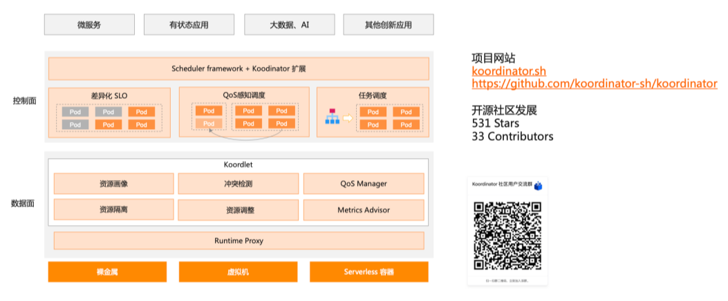 Koordinator 项目完全兼容上游标准的 K8s,无需做任何侵入式修改。阿里云容器服务提供了产品化支持,用户也可以基于开源项目应用在自己的场景中。这个项目还在快速发展的过程中,也欢迎大家一起共建。