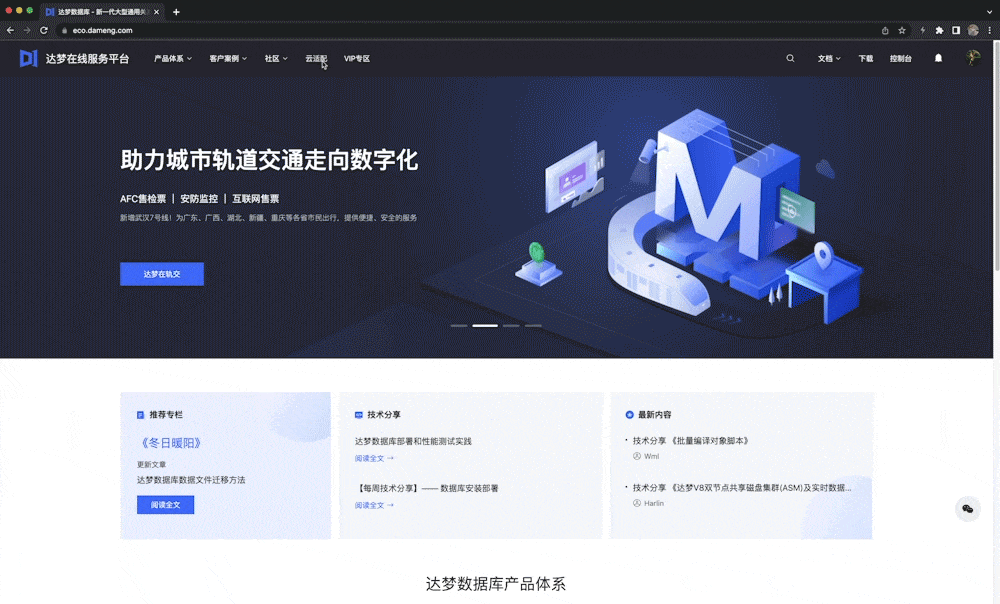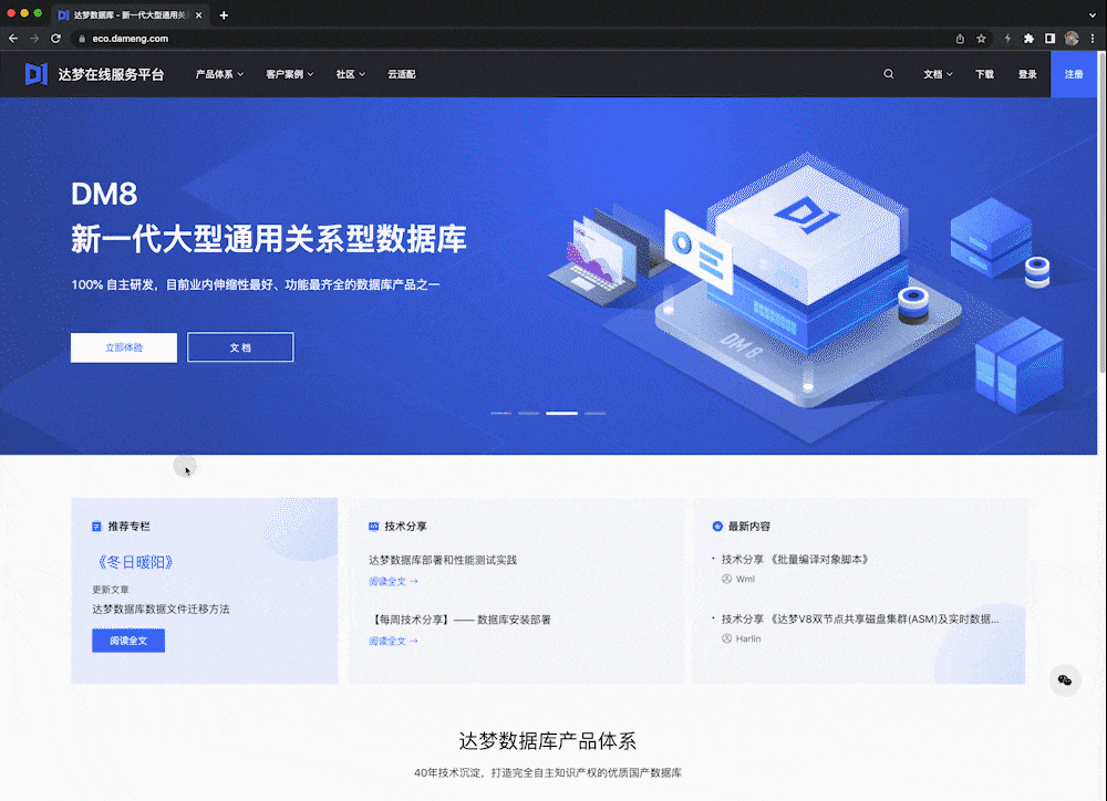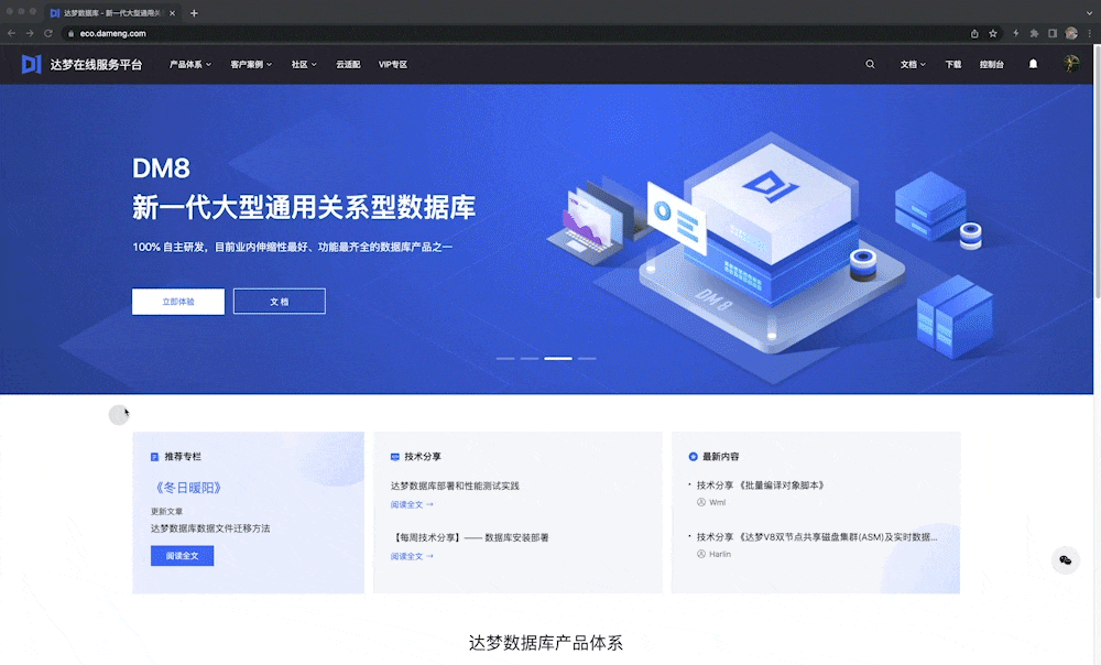 【产品体系】这里有达梦沉淀40余年打造的全栈数据产品和优质解决方案。【客户案例】展现达梦成功应用于数十个重要领域的典型客户案例参考。带您全面了解达梦数据~