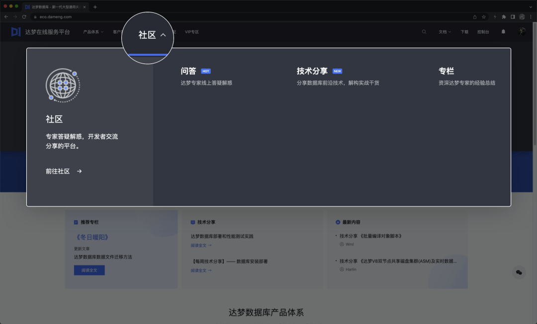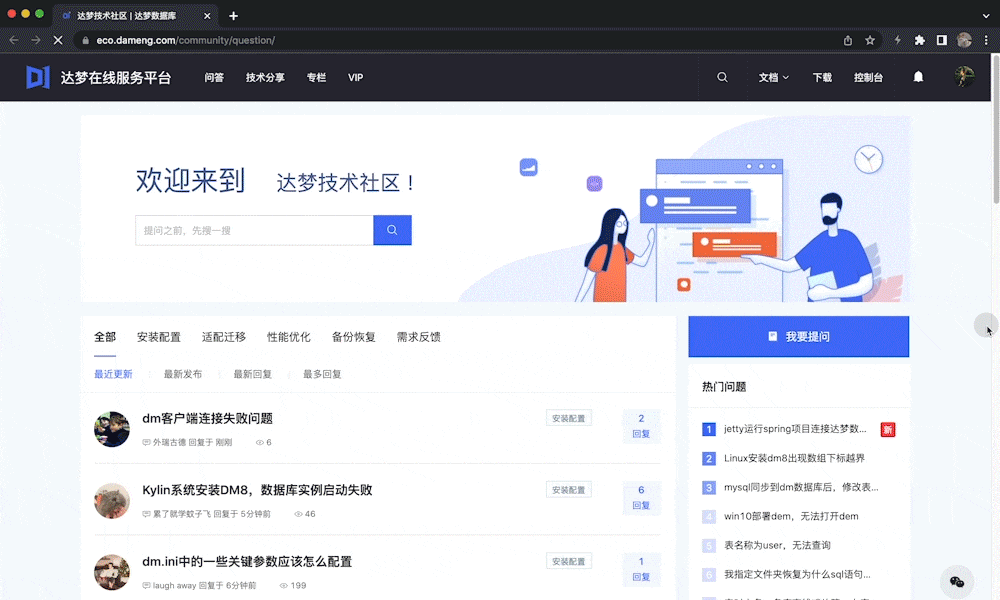 有问必答、技术分享、大咖专栏、专家答疑、开发者交流,您想知道的这儿都有~开放式交流平台,轻松学习达梦数据库!