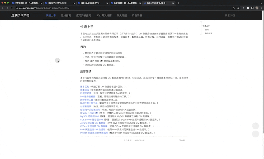 全面海量的文档随时随地查阅,文档类型包含快速上手丨开发指南丨运维指南丨全系列DM8产品手册丨常见问题,从基础到高阶,从上手到开发,助您全面了解和使用达梦系列产品。新增手机页面查看功能,随时随地移动查阅,方便及时!