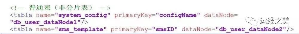 非分片表:一个数据库中并不是所有的表都很大,某些表是可以不用进行切分的,非分片是相对分片表来说的,就是那些不需要进行数据切分的表。在schema.xml 中具体的定义,可参见图七: