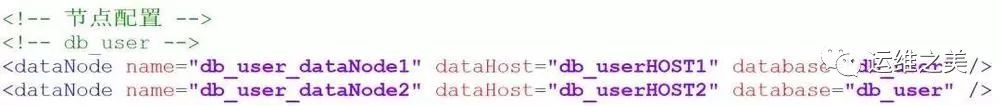 大数据表进行数据切分后,每个表分片所在的数据库就是分片节点,狭义的理解可以认为一个 DB 实例就是一个节点,在 schema.xml 中使用 <dataNode>进行分片节点的定义如图八: