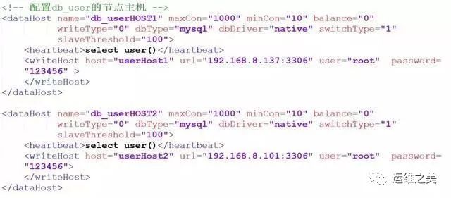 尽量将读写压力高的分片节点(dataNode)均衡的放在不同的节点主机,在schema.xml 中使用 <dataHost> 进行分片节点的定义如图九: