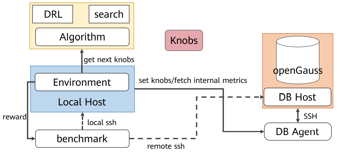 tune: 使用优化算法进行数据库参数的调优,当前支持两大类算法,一种是深度强化学习,另