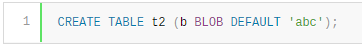 只有用表达式才能给BLOB、TEXT、GEOMETRY和JSON数据类型分配默认值,即使表达式值是字面量: