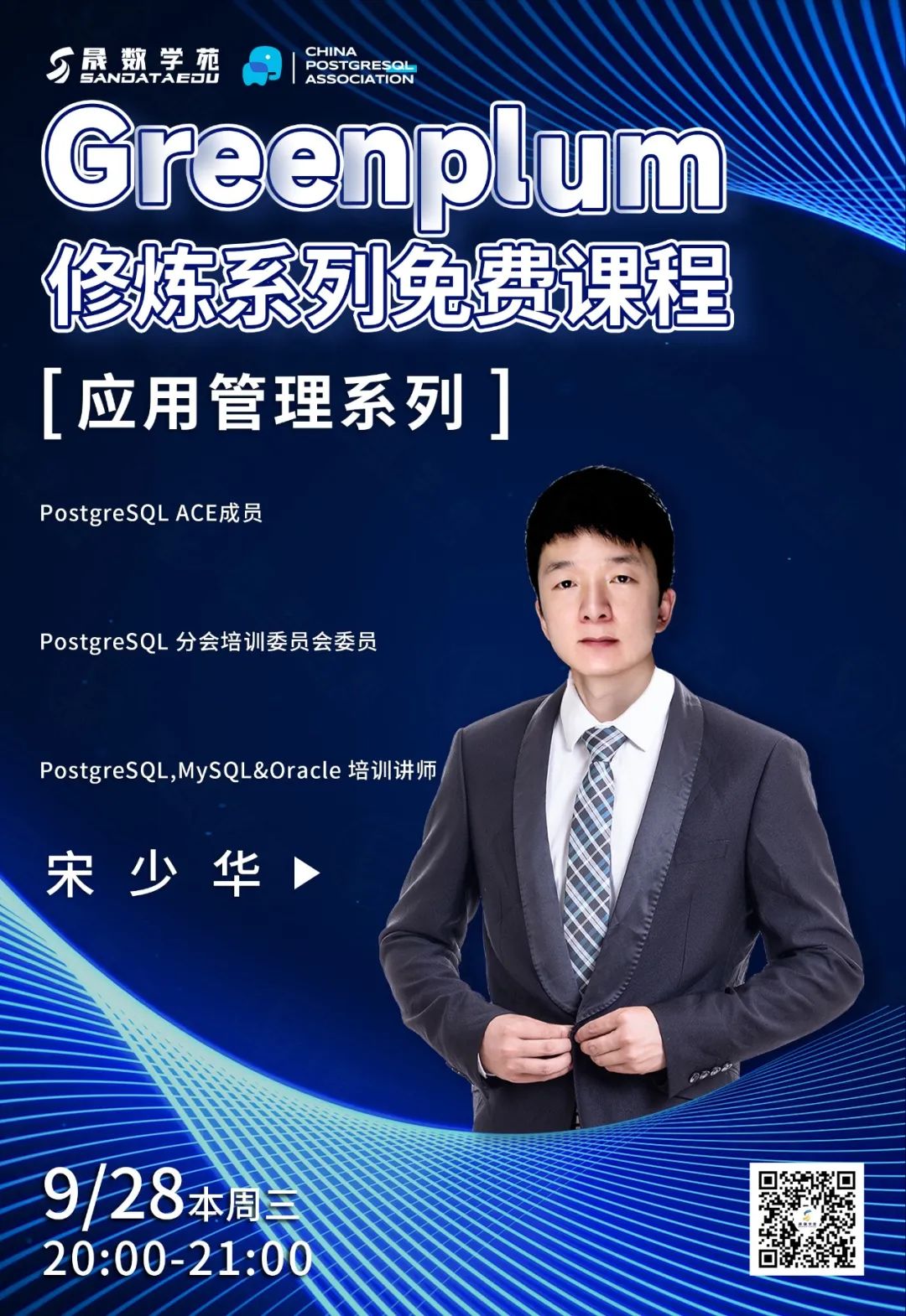 每周三的视频号直播课又要来啦!此次课程宋老师将带来《Greenplum 应用管理系列》。直播将在视频号、快手、哔哩哔哩三个平台同步开展,每周三晚固定时间段(20:00-21:00)直播哦!大家可以扫描下方图片中的二维码进行视频号直播预约,也可以搜索快手号Sandataedu、B站账号晟数学苑点击关注预约,以便大家可以有更多的选择,来寻找更佳更适合的观播体验。