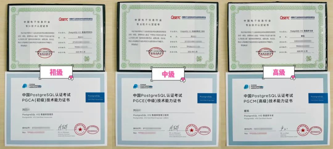 中国PostgreSOL培训认证由中国开源软件联盟PostqreSQL分会,中国电子工业标准化协会和中国软件行业协会三方携手打造、建立培训认证体系,并组织认证考试,由合作培训机构面向学员提供具体培训服务。认证体系分为初级PGCA、中级PGCE 高级PGCM三个等级。