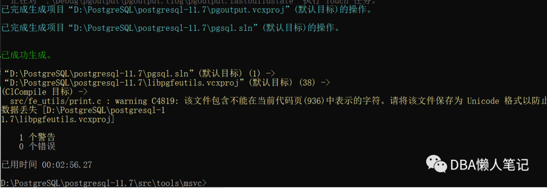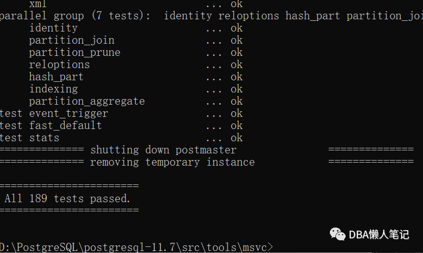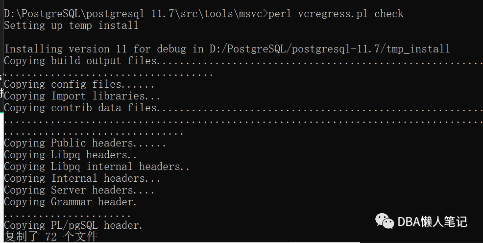 perl vcregress.pl check (编译后检测是否成功)