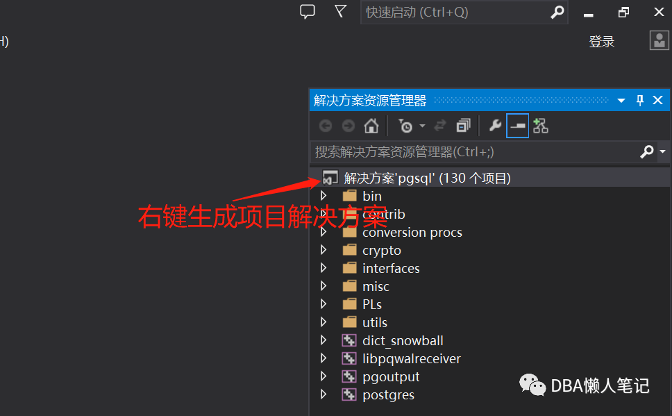 五、vs2013postgreSQL项目解决方案生成