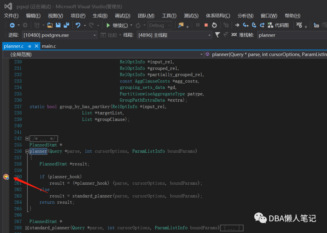 在src\backend\optimizer\plan\planner.c :planner()方法打下断点