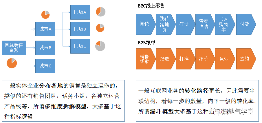 这些模型才是业务提及率最高,讲得最多的模型。这些模型,往往直接使用业务部门的KPI指标,以有逻辑的方式呈现,因此业务部门在讨论问题的时候可以直接往里边套,非常好用。同时,这些模型都是可以基于指标继续拆解的,因此业务讨论完了,可以直接按小组分配任务,并且监督任务完成情况。这两项优势,使得业务非常喜欢用这一类模型,时不时还自己创造两个。