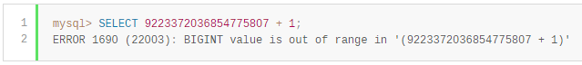 BIGINT | -263 | 0 | 263-1 | 264-1 |
