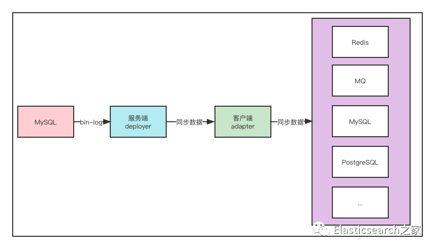 canal是阿里开源的数据同步工具,基于bin log可以将数据库同步到其他各类数据库中,目标数据库支持mysql,postgresql,oracle,redis,MQ,ES等