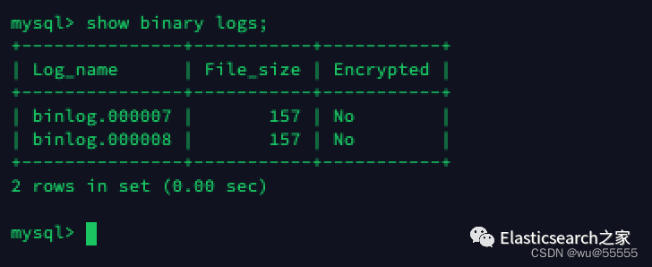 # 源mysql服务器中登陆mysql执行show binary logs;